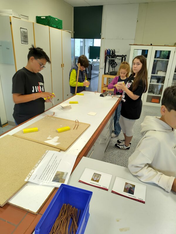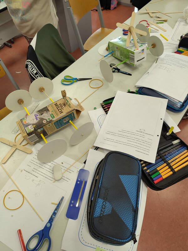 Am ersten Tag ging es unter dem Motto „Naturwissenschaften und Kunst“ um fächerübergreifende kreative Praxis, am zweiten Tag galt es ausgehend von vorgegebenem Material, aber ohne weitere Hinweise ein Fahrzeug mit Gummibandantrieb zu konstruieren. Den Abschluss bildeten schließlich der Bau von Knatterbooten und Experimente mit Seifenblasen. Wir danken in diesem Zusammenhang der Wissenswerkstatt in Saarbrücken für die Bereitstellung der Materialien für die Knatterboote.