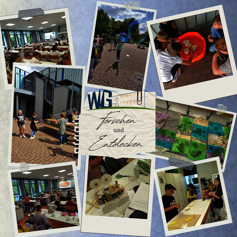 In der ersten Woche der Sommerferien experimentierten über 30 Schülerinnen und Schüler der neuen Jahrgänge 5 und 6 drei Vormittage lang mit großer Begeisterung. Begleitet wurden sie dabei von drei Lehrkräften des WG. Den neuen Schülerinnen und Schülern bot sich dadurch die Gelegenheit vor dem Start des Schuljahres das Geländes des WG besser kennenzulernen und alle hatten die Möglichkeit, neue Kontakte zu knüpfen.