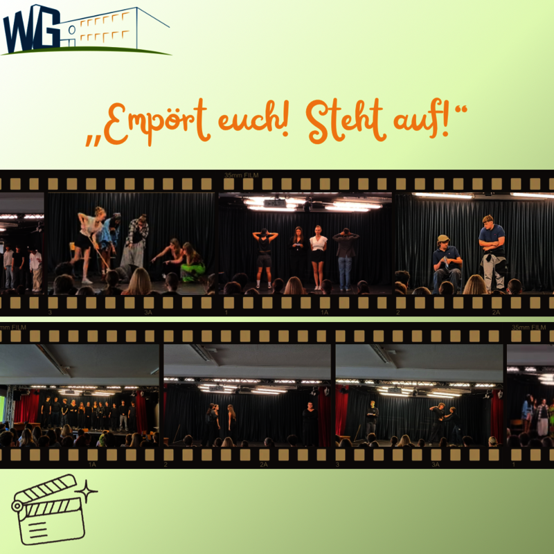 Ihre eigenständig erarbeiteten Szenencollagen präsentierten die beiden DS-Kurse 12 ihre eigenständig erarbeiteten Szenencollagen zum Thema "Empört euch! Steht auf!".
