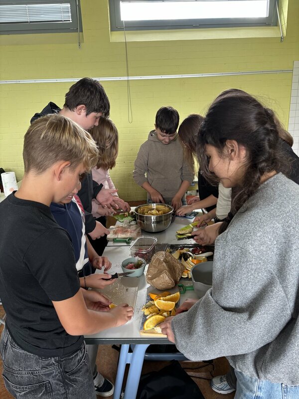 Die Schülerinnen und Schüler haben gemeinsam Rezepte studiert und überlegt, welche Zutaten man eigentlich in welchen Mengen braucht. Im Anschluss hat man sich darauf vorbereitet, in unserem Nachbarland auf einem Markt die ganzen Zutaten zu besorgen, natürlich auf Französisch.