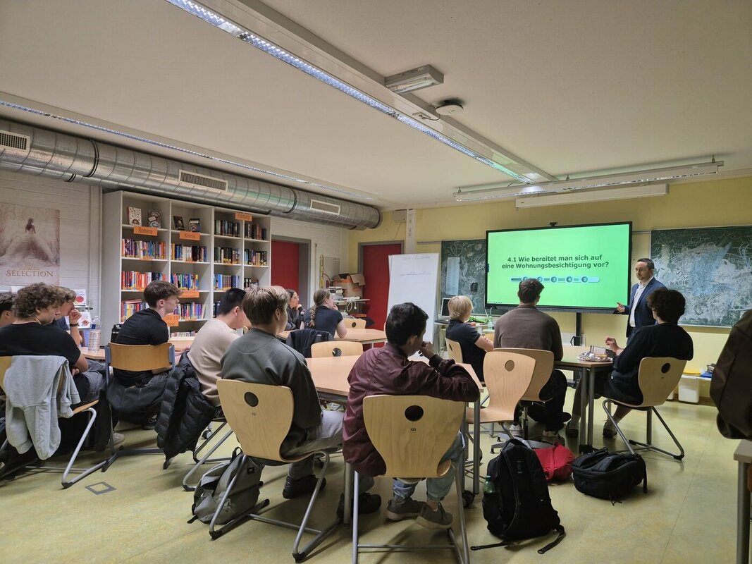 So wurden die Schülerinnen und Schüle in vier Gruppen aufgeteilt, die nacheinander jeweils an vier Workshops teilnahmen. In diesen wurden ihnen die Themen ,,Steuern‘‘, ,,Finanzen‘‘, ,,Wohnen‘‘ und ,,Berufsstart‘‘ nähergebracht. So erklärten Expertinnen und Experten aus den genannten Gebieten die unterschiedlichen Steuerarten und ihre Auswirkungen, verschiedene Möglichkeiten zur Geldanlage, den Unterschied zwischen Kalt- und Warmmiete oder das richtige Aufsetzen eines Lebenslaufes.